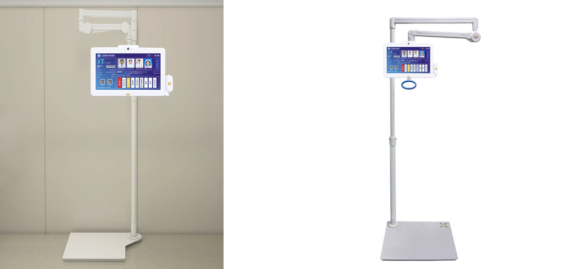 落地固定式智能床旁屏采用固定獨立支架設計,快速完成安裝且全程零噪音、無粉塵,通過高度/傾角可調支架。